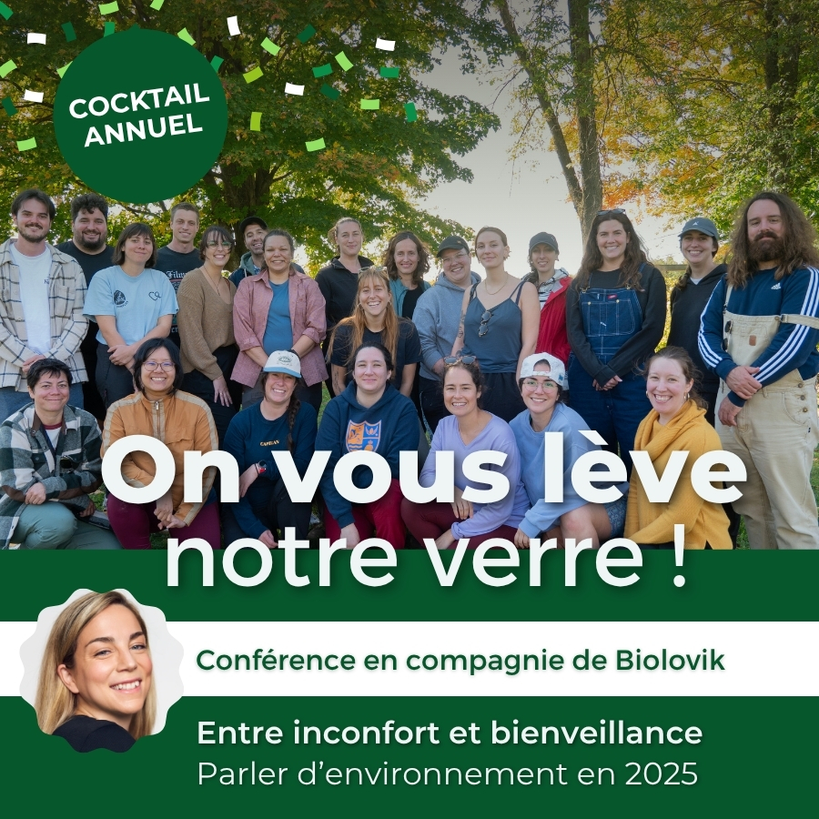 Cette année, notre équipe teste une toute nouvelle formule : un 5 à 7 festif gratuit pour les membres de Nature Québec. Ce sera l’occasion parfaite de venir rencontrer notre équipe, de discuter des projets et de campagnes qui vous intéressent et de profiter des bouchées et consommations gratuites offertes par nos généreux partenaires.